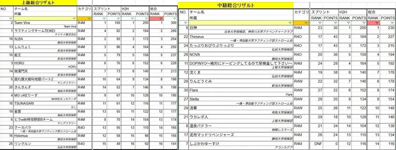16位以上が上級、17位以下が中級なので、びちゃ、艇王、しんりょくが上級、りんどうぐみが中級になった。