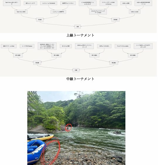 予想通りの対戦相手だ。スタートも思っていた通り下流を選ばれ、我々は上流からスタート。スタート地点にある岩をぎり左除けし、相手よりも早く流れに乗ることを意識できた。