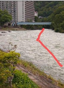 向かう流れに吸われていて右岸に寄り切れていなかったため、無意識的にちきってしまいたてる判