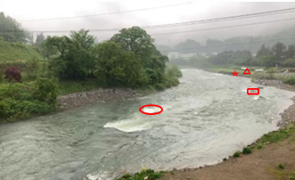 ぎりぎりで刺す事は出来たが、左岸に流れがあり直ぐに立てると離される危険性が高かったため被さる形にした。しかし、その後スカウティング通りの後ろと、左岸に寄りたい前と意見が割れてしま