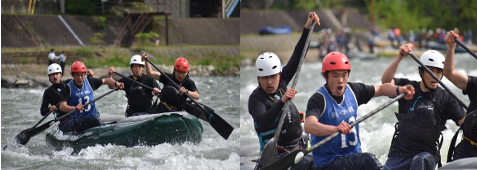 下流選択。本流に入るまでに競ったが左がしっかりパドルを取り先行。この際あいてにぶつけるこ